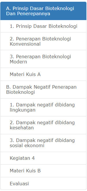 Navigasi ini terletak di bagian kiri yang berisi daftar judul tiap subbab pada bab Bioteknologi.